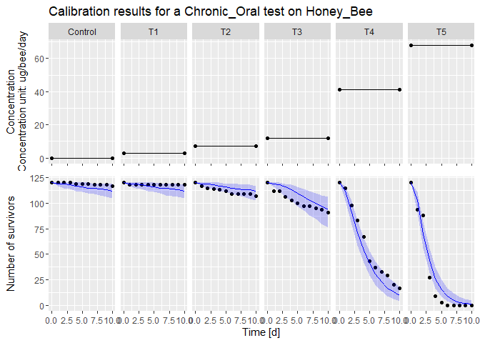 prediction <- predict(fit, dataPredict) # Perform forwards prediction. At the moment, no concentration recalculation is performed in the forwards prediction. The concentrations are taken as in a chronic test