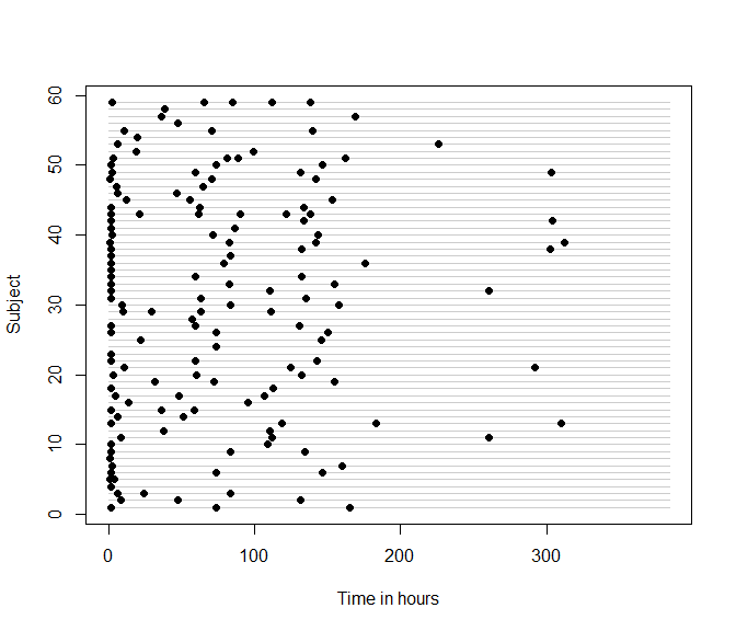 xlab.abacus="Time in hours",pch=16,col.abacus=gray(0.8))
