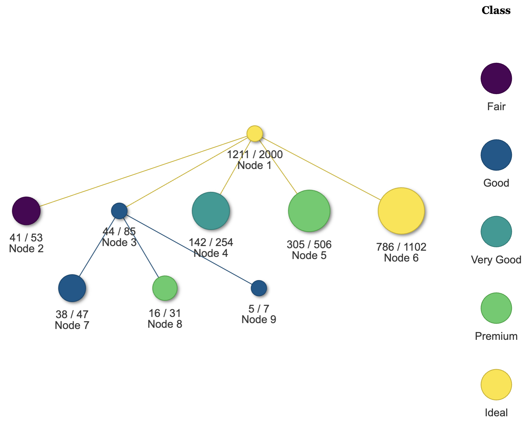 #> [1] "Every observation in node 2 is predicted to be Fair"To make predictions: