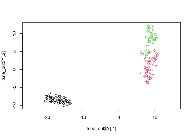 tsne_out <- Rtsne(as.matrix(iris_unique[,1:4])) # Run TSNE