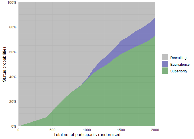 #> Number of participants randomised at each look:  400, 500, 600, 700, 800, 900, 1000, 1100, 1200, 1300, 1400, 1500, 1600, 1700, 1800, 1900, 2000, 2000