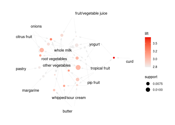 Hahsler M (2017). “arulesViz: Interactive Visualization of Association Rules with R.” R Journal, 9(2), 163-175. ISSN 2073-4859, doi:10.32614/RJ-2017-047 https://doi.org/10.32614/RJ-2017-047, https://journal.r-project.org/archive/2017/RJ-2017-047/RJ-2017-047.pdf.