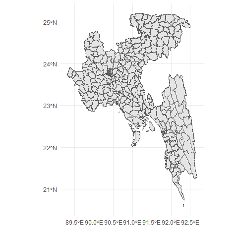 sylhet_chittagong_dhaka <- get_divisions(divisions = c("Sylhet", "Chittagong", "Dhaka"),level = "upazila")