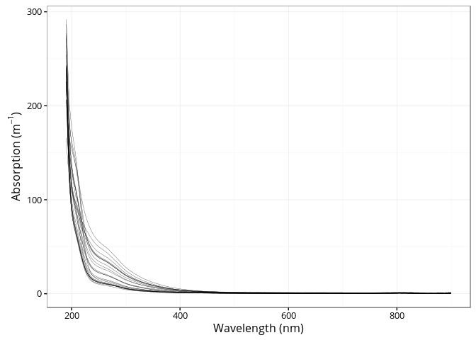 res <- cdom_spectral_curve(wl = spectra$wavelength,