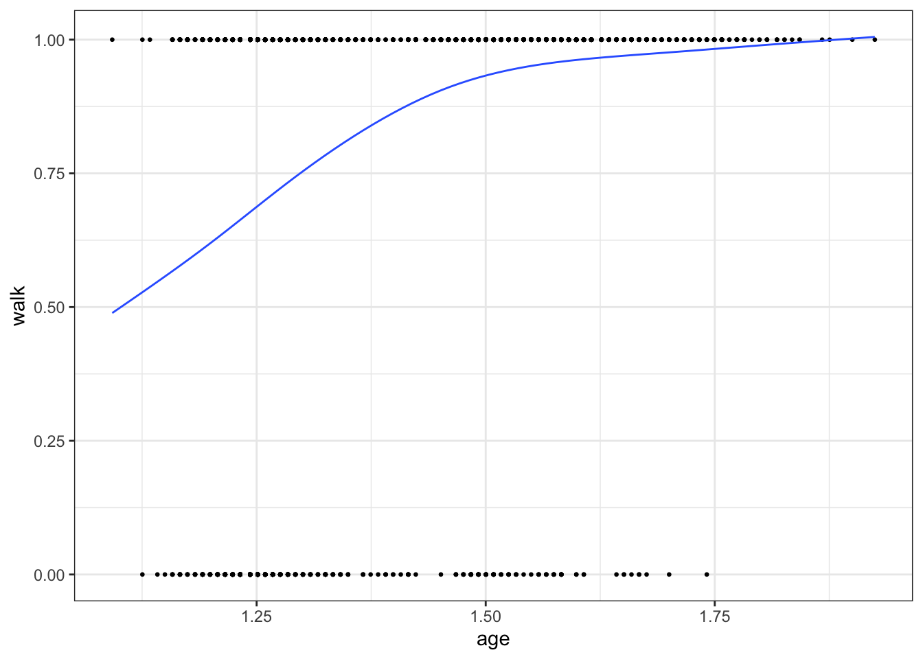 The following example visualises how the proportion of toddlers that are able to walk increases with age.