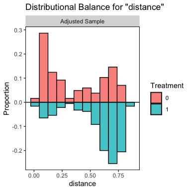 bal.plot(m.out, var.name = "distance",