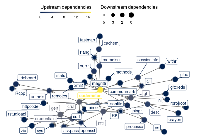 depgraph::plot_dependency_graph("../../ropensci/codemetar", suggests = FALSE)