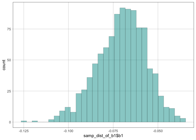 #> [1] 1.787835e-07The estimate extraction functions help to simplify the ability to create bootstrapped sampling distributions of those estimates. Here is an example of bootstrapping the slope: