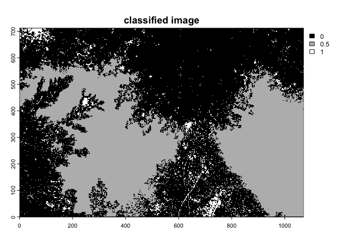The function returns a dataframe of classified pixels into ‘Canopy’, ‘Small_gap’ and ‘Large_gap’ classes. ‘Var1’>0 identify each gap region, ‘Freq’ is the number of pixels in each gap, while ‘NR’ is the image size.