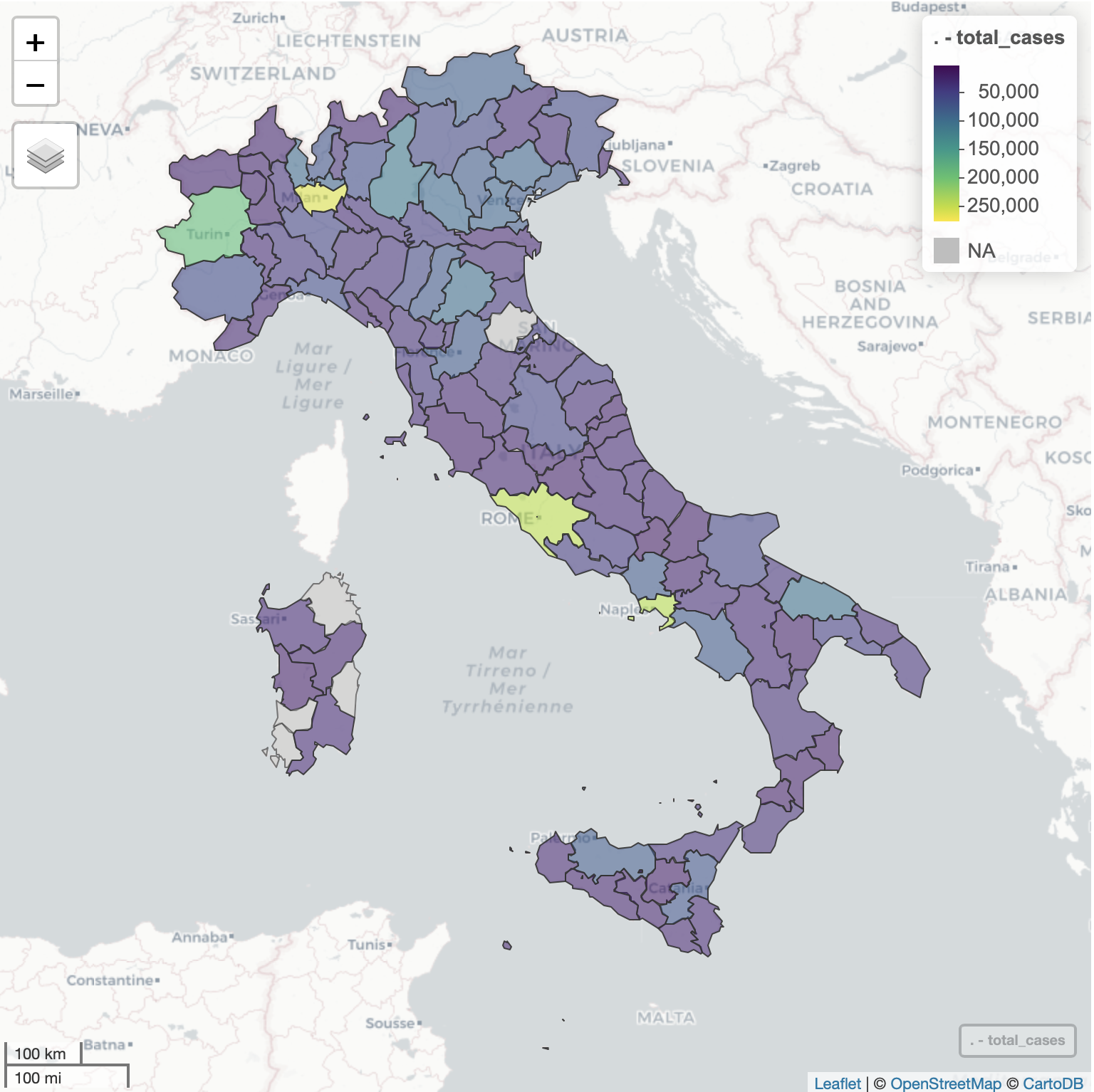 layout(title = "Italy - Distribution of Covid19 Cases",