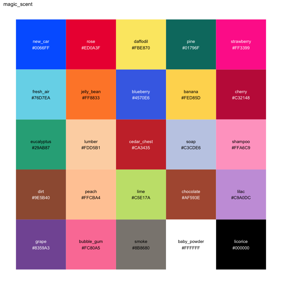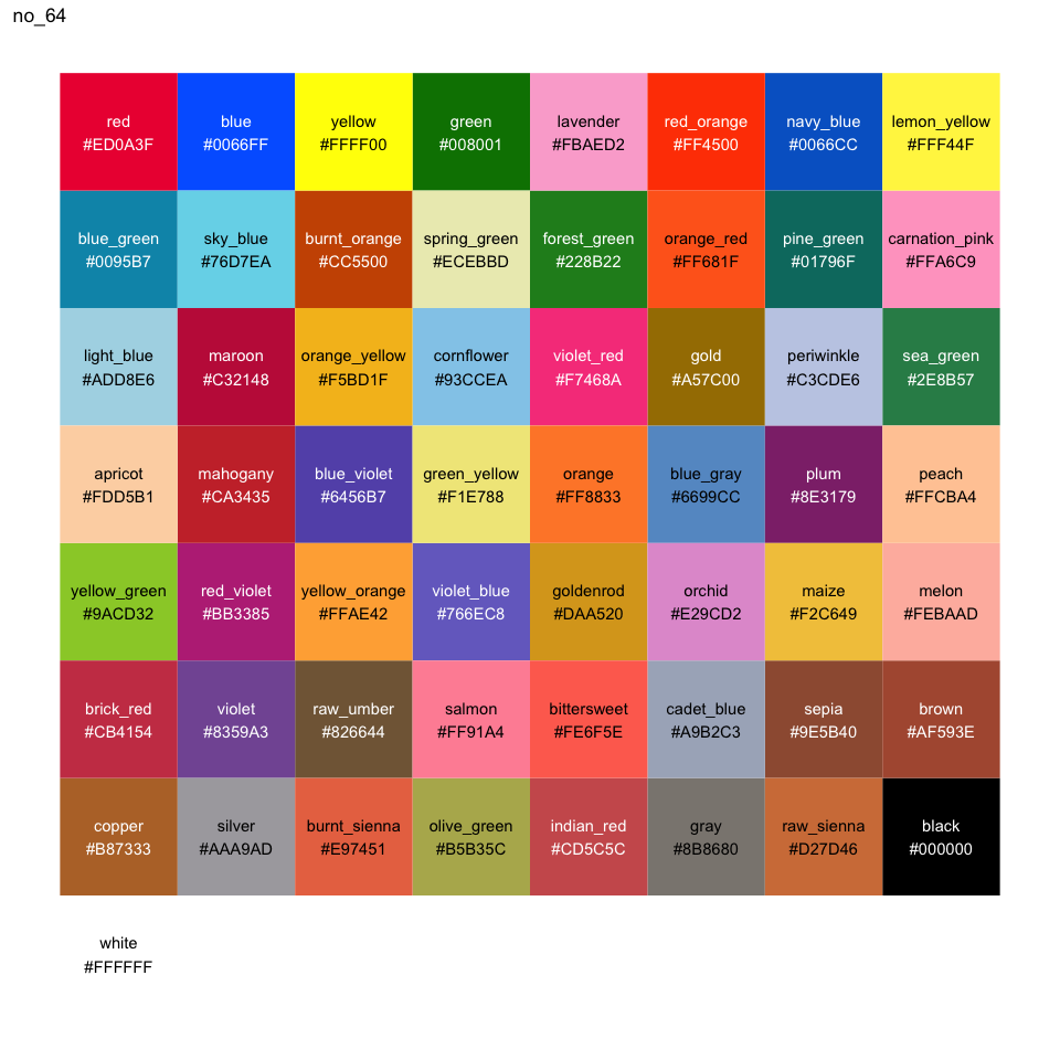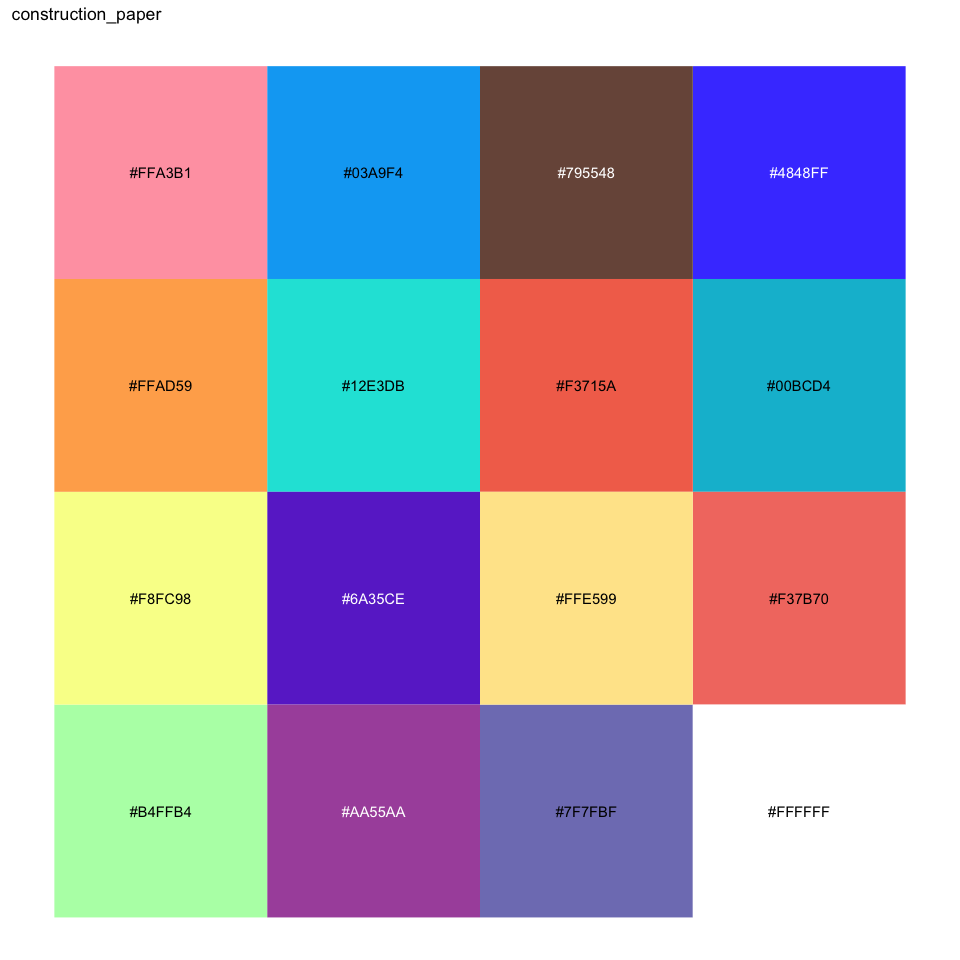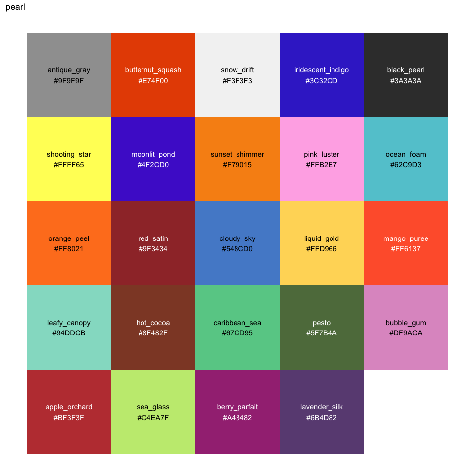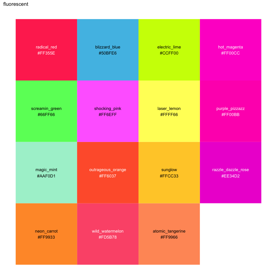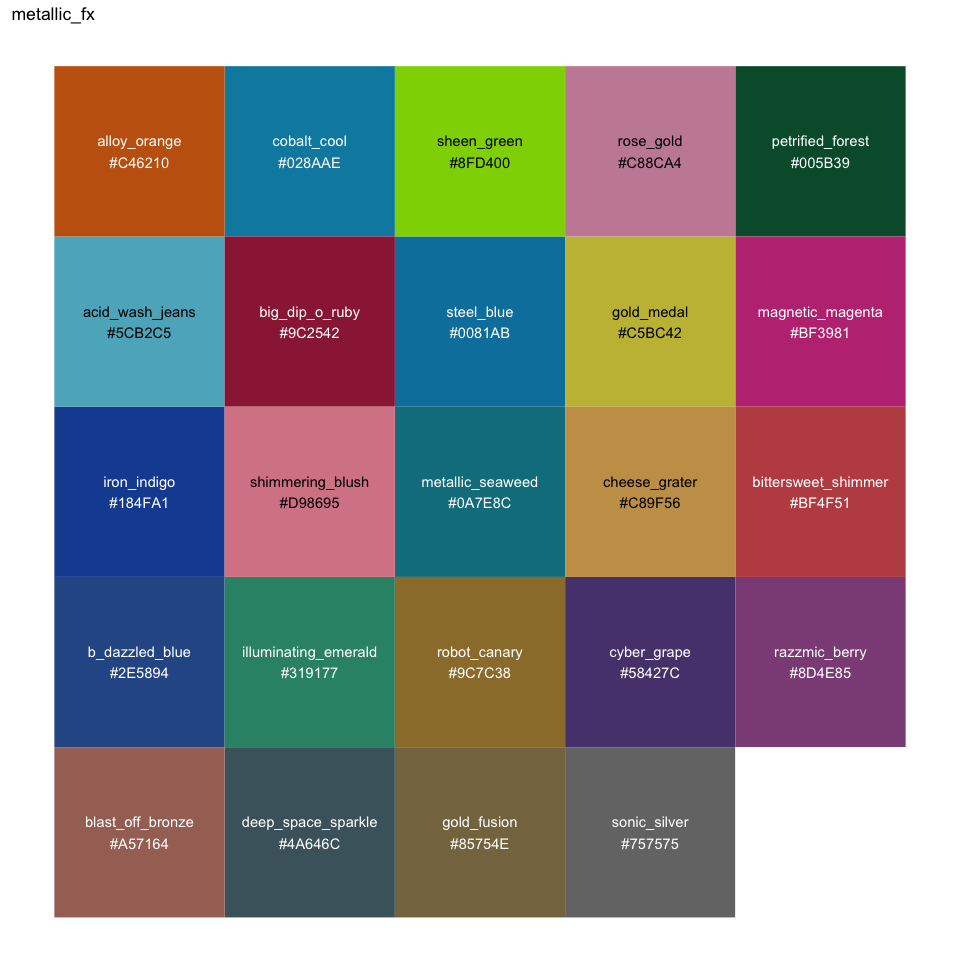 crayons provides crayon-based color palettes. For nostalgic uses, consider combining with ggrough or roughsf.