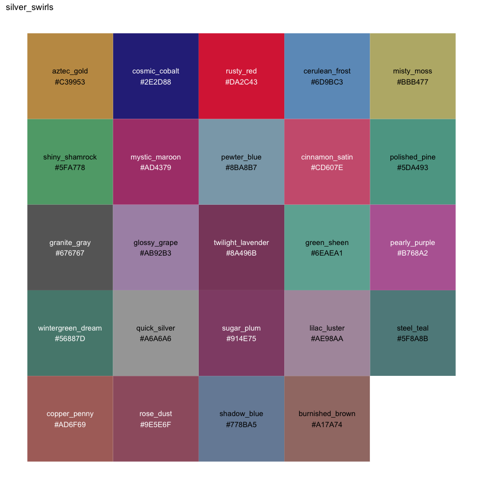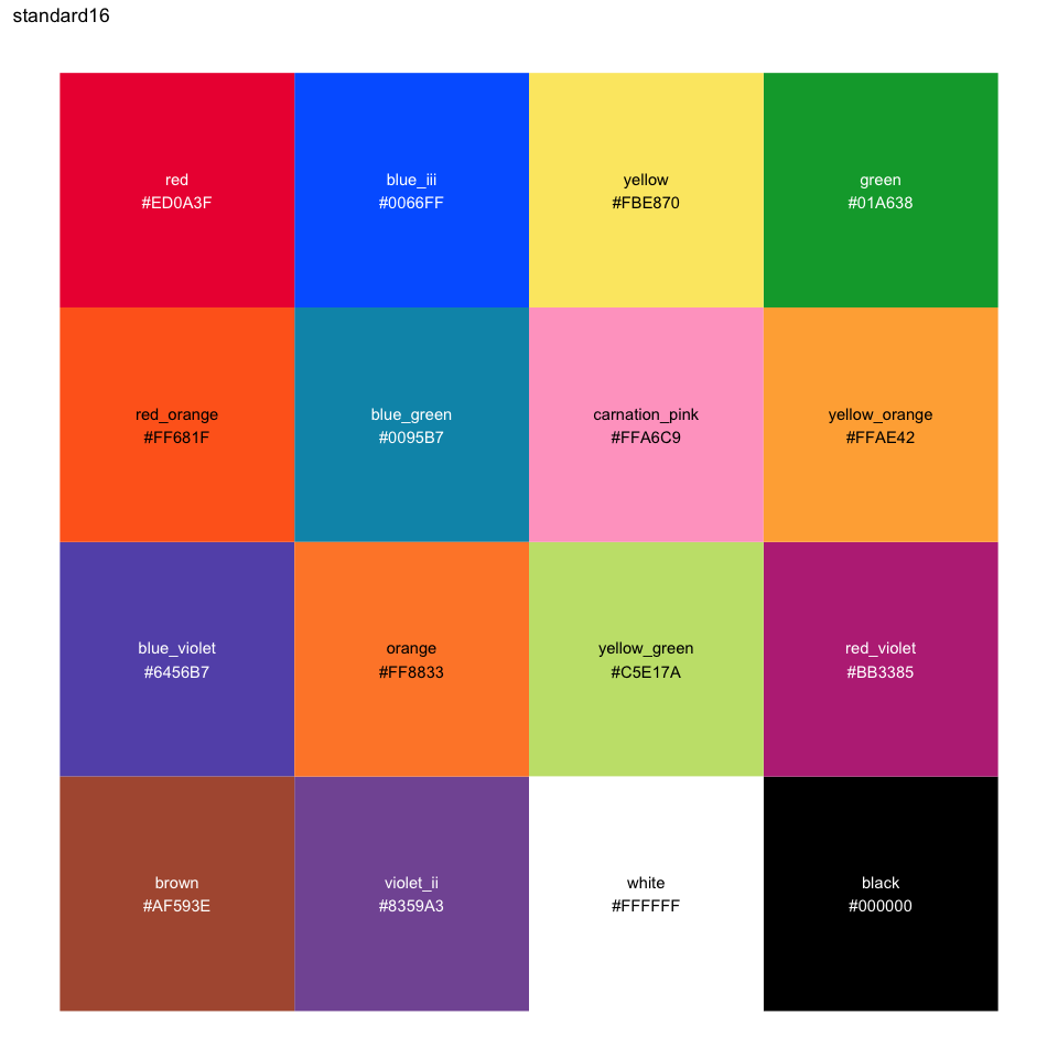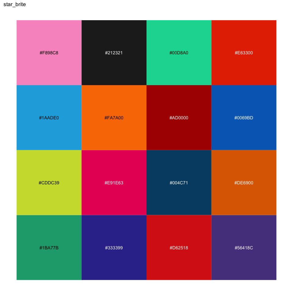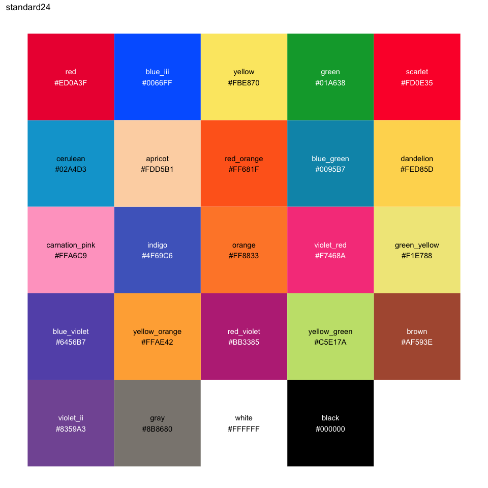 These palettes are not necessarily (and unlikely to be) color-blind friendly. For public-facing work, consider a color-blind friendly package, such as Cory McCartan’s wacolors.