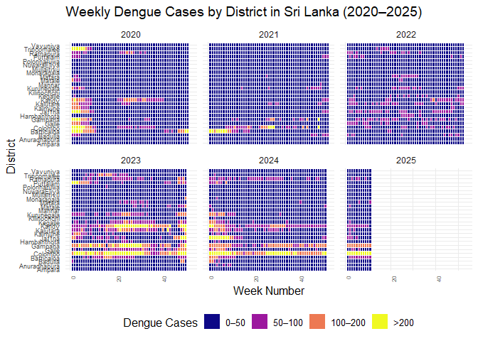 title = "Weekly Dengue Cases by District in Sri Lanka (2020–2025)",