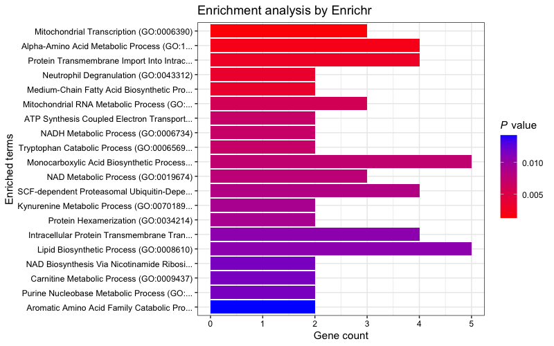 head(enriched[["GO_Biological_Process_2023"]])| Term | Overlap | P.value | Adjusted.P.value | Old.P.value | Old.Adjusted.P.value | Odds.Ratio | Combined.Score | Genes |