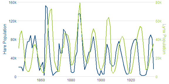 c("Hare Population" = "Hare"), c("Lynx Population" = "Lynx"),