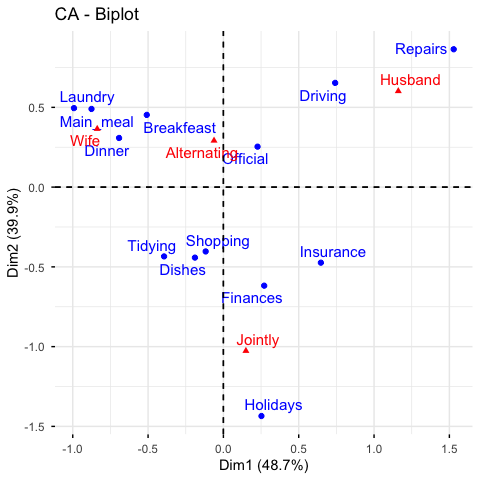 res.ca <- CA(housetasks, graph = FALSE)# Result for row variables