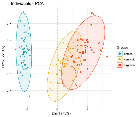 habillage = iris$Species, # color by groups