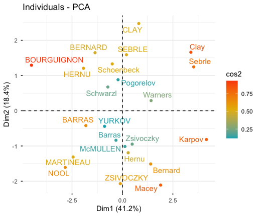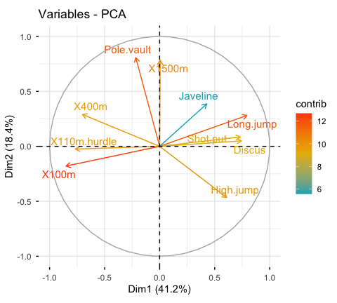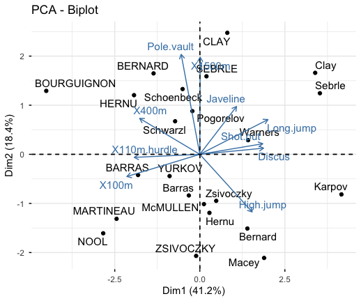 df <- decathlon2[1:23, 1:10]library("FactoMineR")