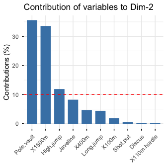 | fviz_contrib | Visualize the contributions of row/column elements from the results of PCA, CA, MCA functions. |
