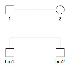 x = nuclearPed(children = c("bro1", "bro2"))