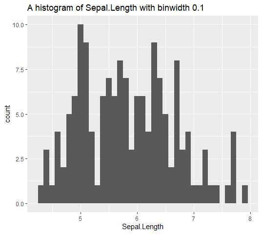 histogram_plot(Sepal.Length, binwidth = 0.1)