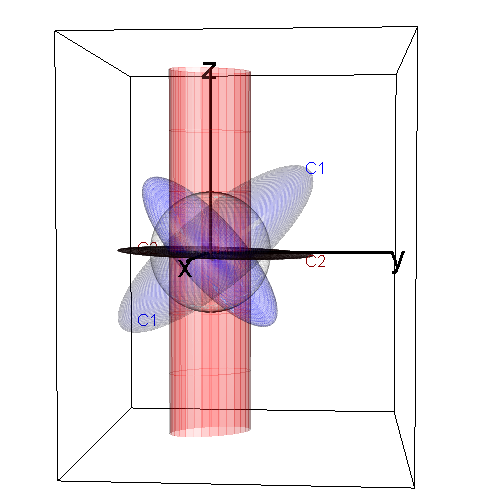 #> 0 0 3The following figure shows views of two generalized ellipsoids. (blue) determines a proper, fat ellipsoid; it’s inverse