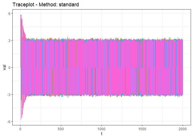 devtools::install_github("LukeDuttweiler/genMCMCDiag")Consider the results of a multi-chain MCMC algorithm over a