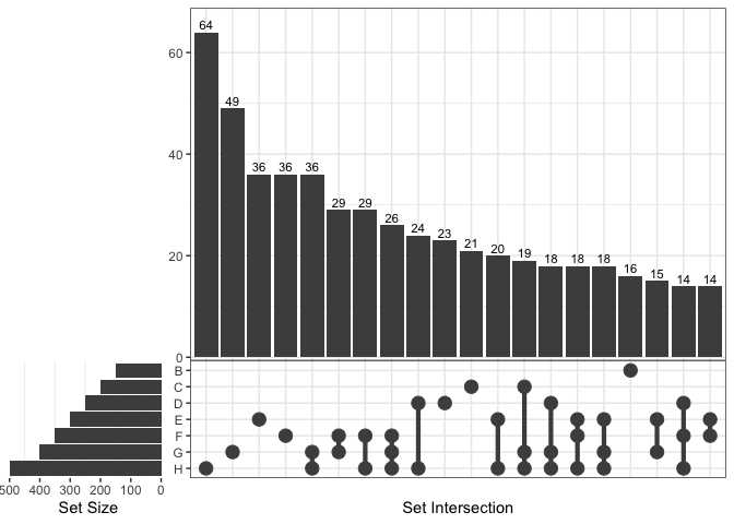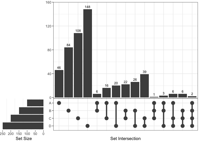 #> 15 1/2/3/4 A/B/C/D <chr [0]> 0If only several items were included, intersections may also be viewed