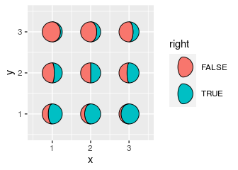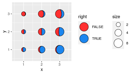 aes(x, y, ratio = ratio, right = right, fill = right, size = 2^x),