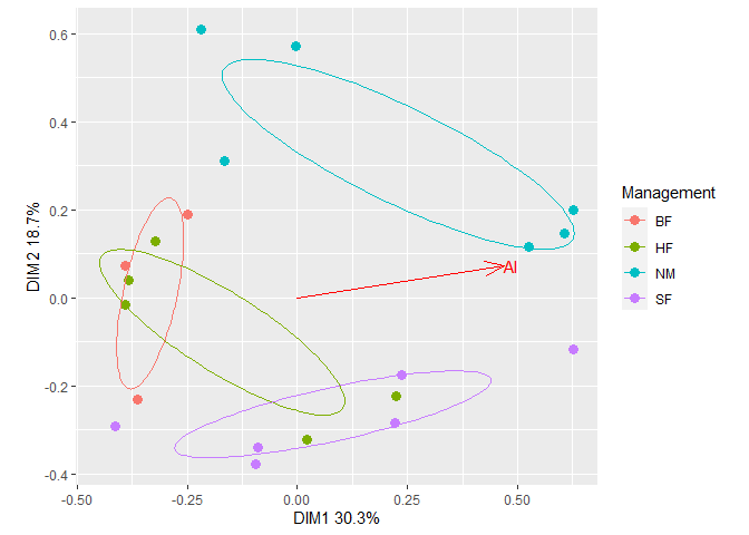 plt2 <- gg_envfit(ord, env = Al, groups = dune.env$Management, plot = FALSE)