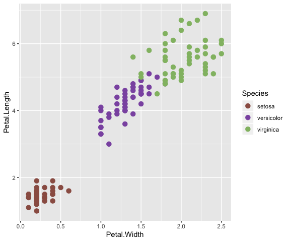 ggplot(iris, aes(x=Petal.Width, y=Petal.Length)) +