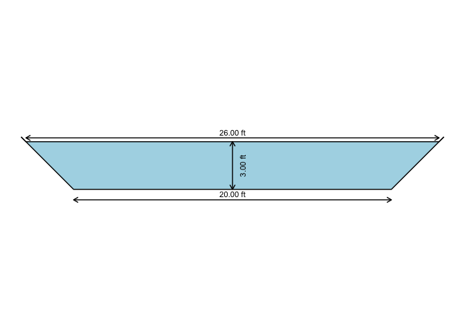 oc3 <- manningt(Q = 360., n = 0.015, m = 1, b = 20.0, y = 3.0, units = "Eng")