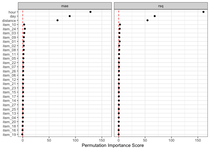Since there are spline terms and interactions for the hour column, we might not care about the importance of a term such as hour_06 (the sixth spline feature). In aggregate, we might want to know the effect of the original predictor columns. The type option is used for this purpose: