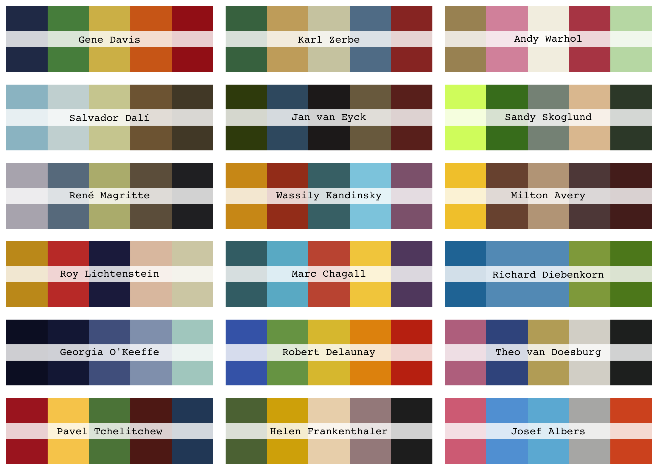 #>  1 Josef Alb… Adobe (Varian… JosefAlbers #D77186 #61A2… http://www.wikiart.org/…