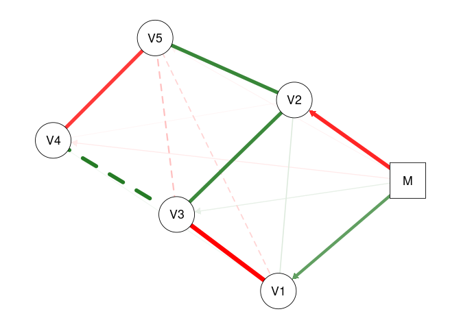 # Now, lets fit the saturated model where 'M' moderates all edges in the network