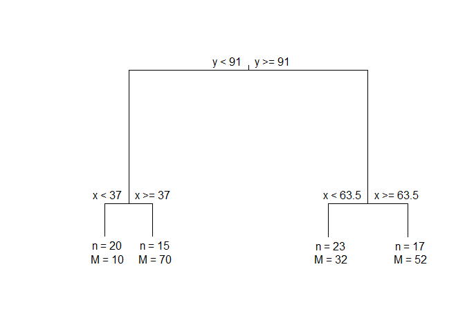 #> 4) x < 37 20 3689.500 *