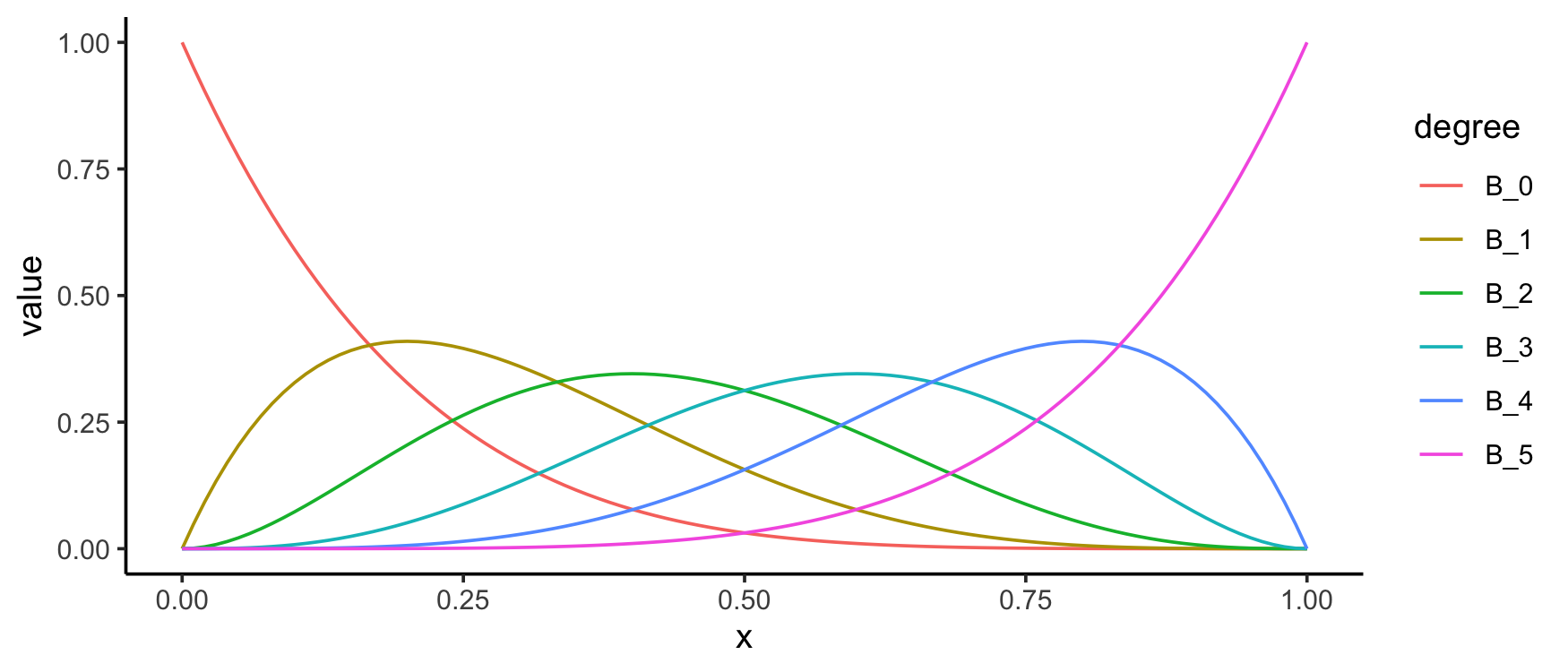 N <- 5 # number of bernstein polynomials to plot