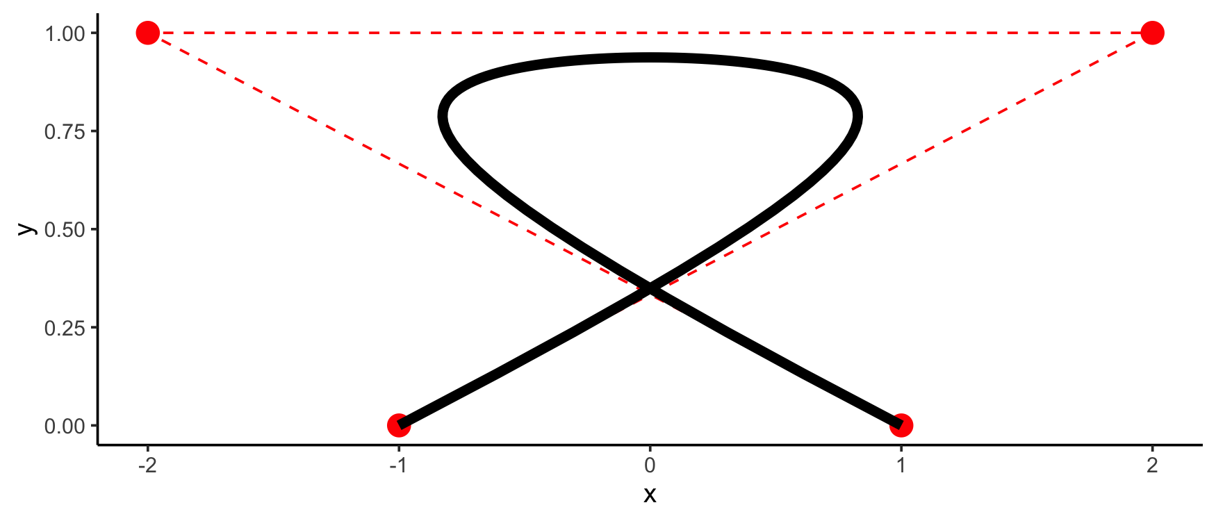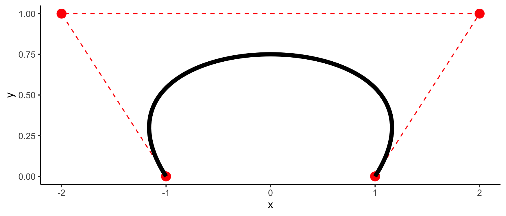 points <- data.frame(x = c(1,-2,2,-1), y = c(0,1,1,0))