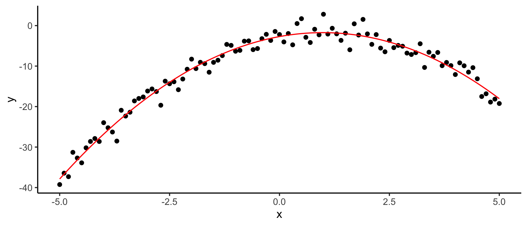 df$y <- with(df, -x^2 + 2*x - 3 + rnorm(n, 0, 2))