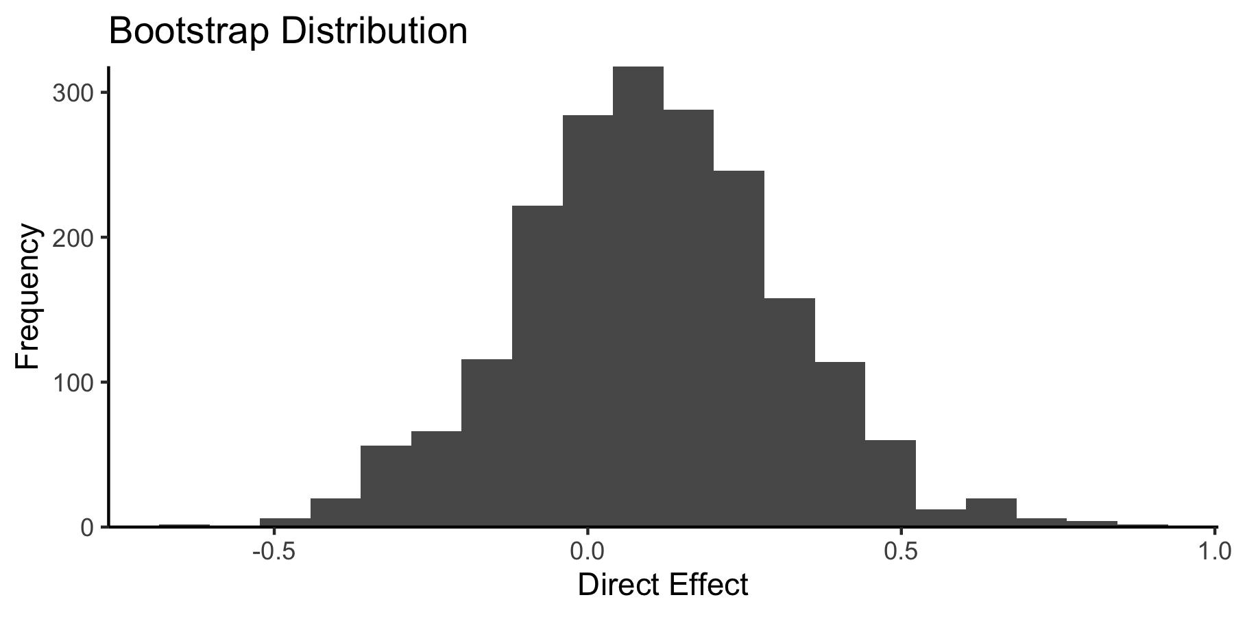 labs(x = "Direct Effect", y = "Frequency", title = "Bootstrap Distribution")