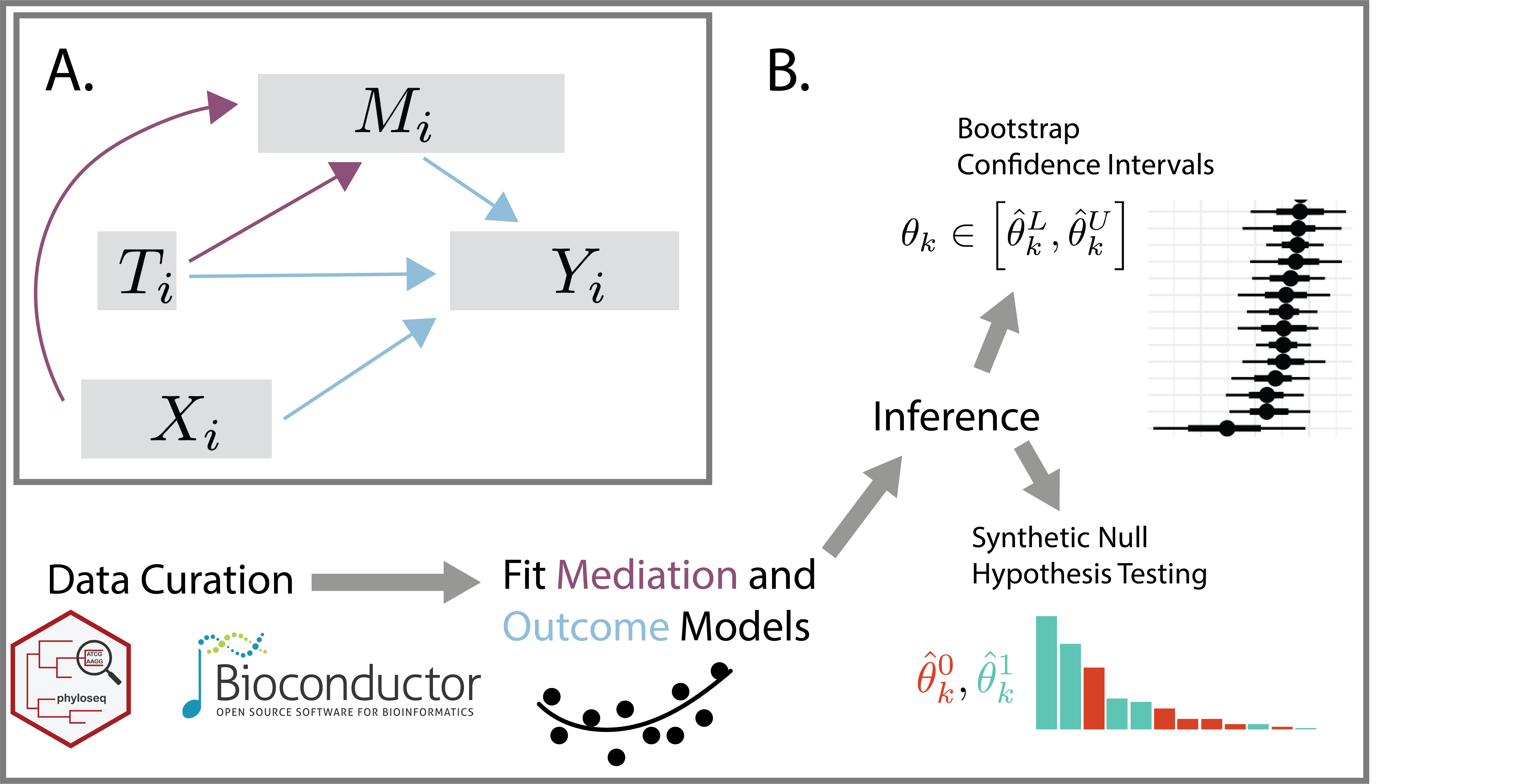 multimedia is an R package for multimodal mediation analysis of microbiome data. It streamlines data curation, mediation and outcome model specification, and statistical inference for direct and indirect effects. By defining causal relationships across data modalities, it can support principled data integration. You can read more about the package in our preprint: