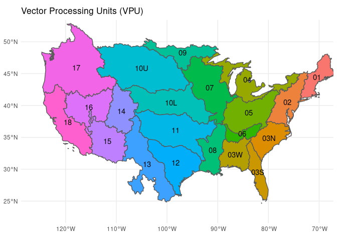 below for a low resolution vpu map (also nhdR::vpu_shp). A