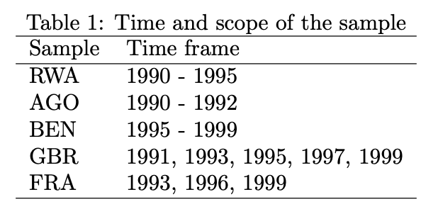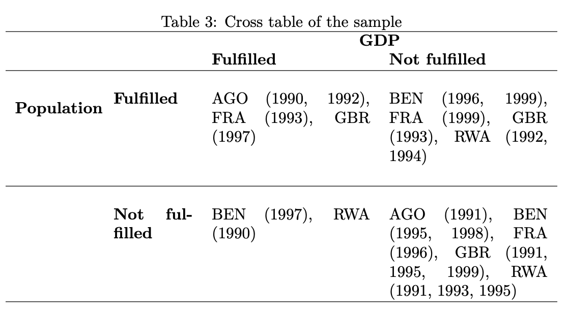 | Shows cross-table based on country-year units | ✓ | ||||||||