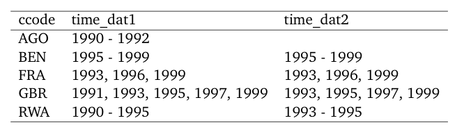#> ccode time_dat1 time_dat2