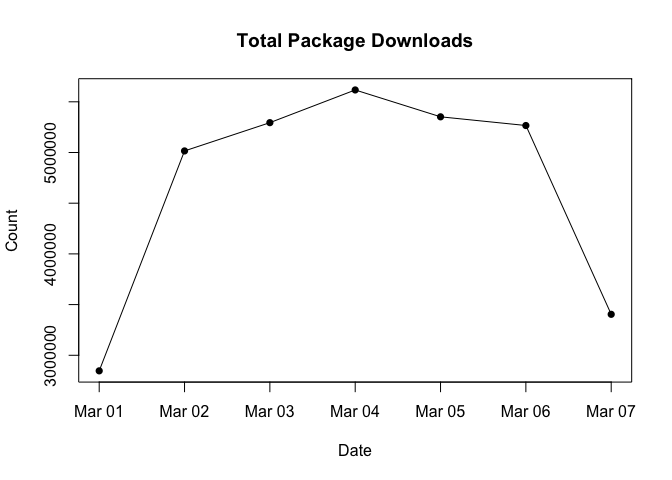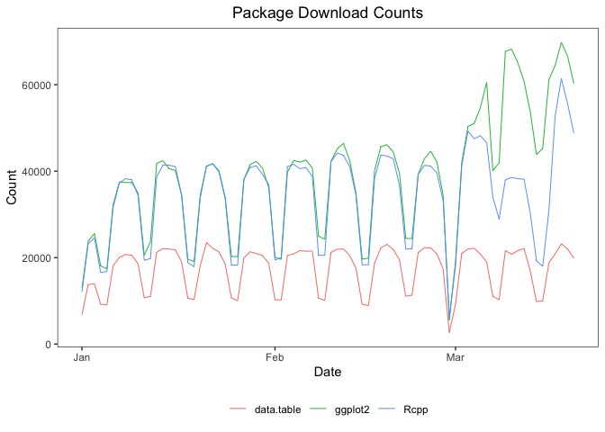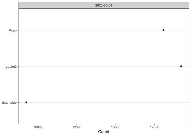cranlogs::cran_downloads()plot(cranDownloads())