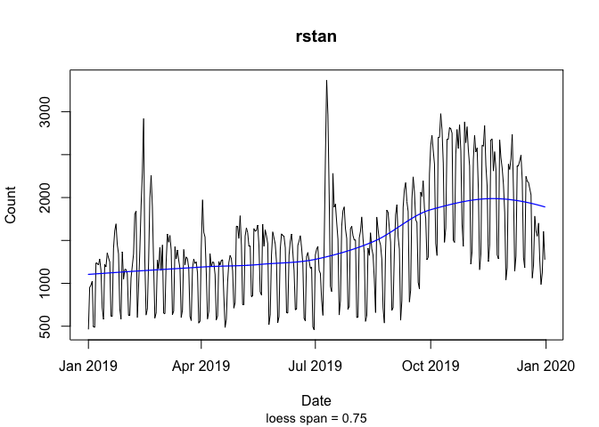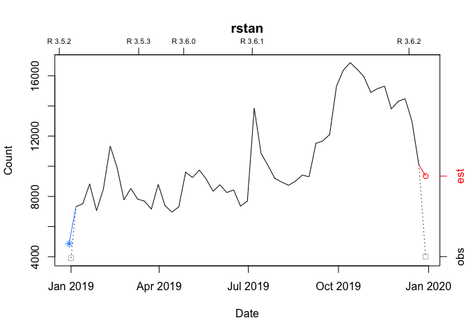 Let’s say you want the year-to-date download counts for ‘rstan’. With