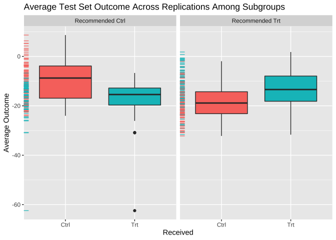 ## Est of E[Y|T=Trt,Recom=Trt]-E[Y|T=/=Trt,Recom=Trt]