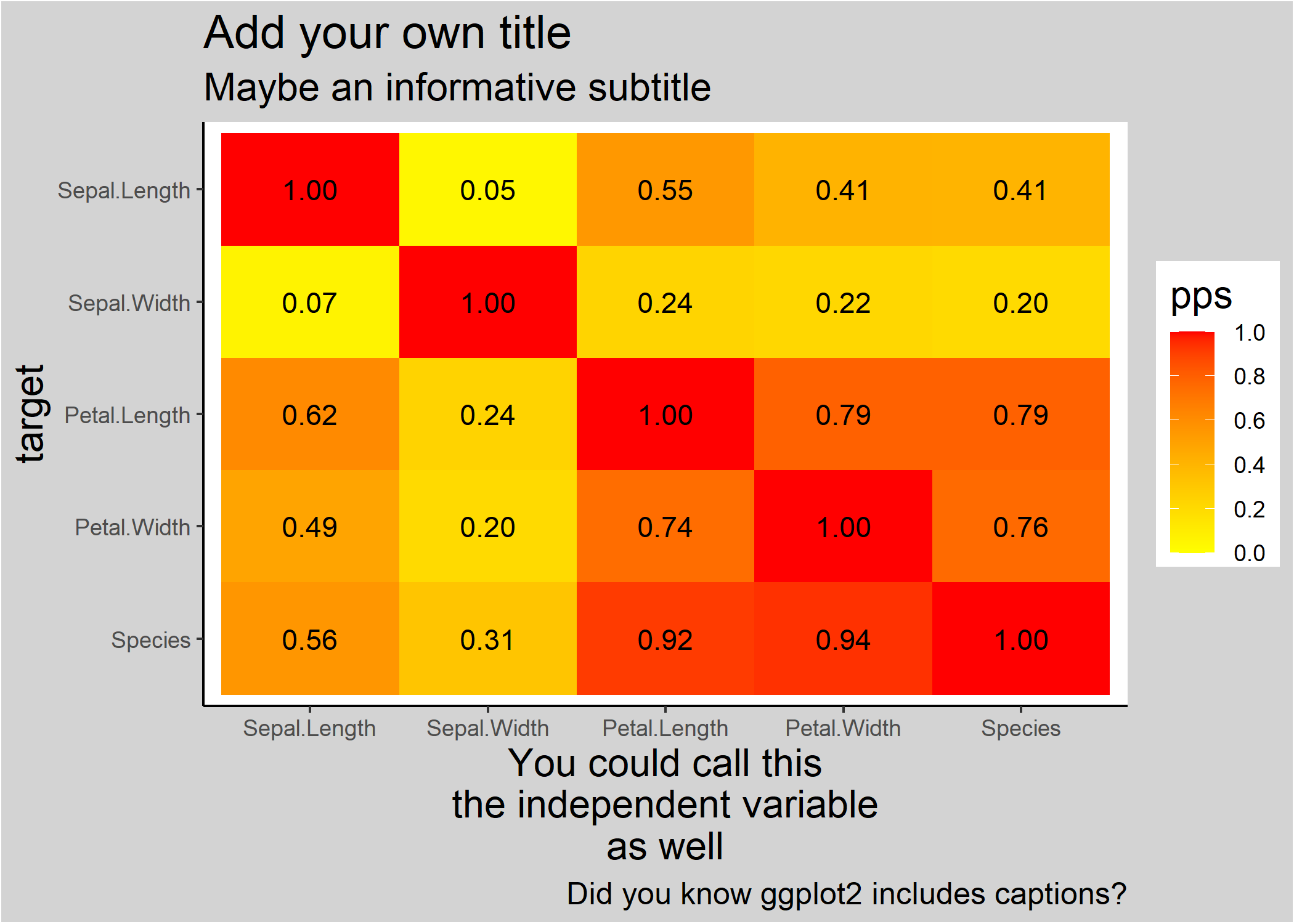 #> 1  Sepal.Length Sepal.Length predictor and target are the same 1.00000000