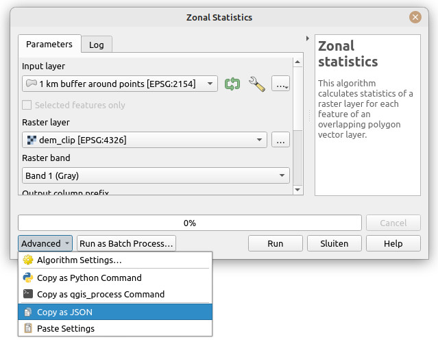 copying either the qgis_process command string or the JSON