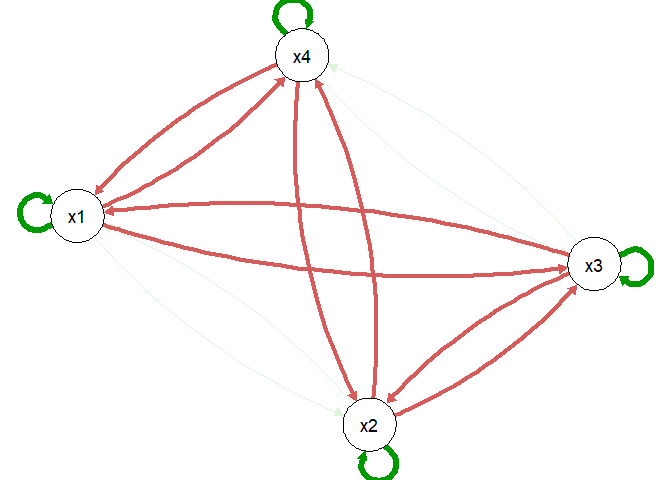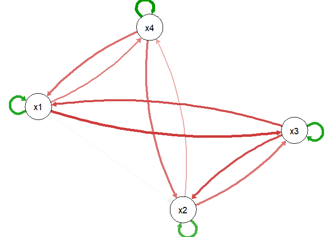 qV1 <- quadVAR(data, vars = c("x1", "x2", "x3", "x4"))